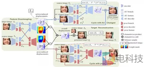 区别于当前人脸区域分块、注意力机制等方法学习人脸局部区域的AU特征,这类方法在训练阶段需要利用精确标注的AU标签,由于目前业界发布的AU数据集人数及图像总量不足,采用监督学习方法训练得到的模型往往呈现出在特定数据集上的过拟合现象,他们提出了一种能够在不依赖AU标签的前提下,从人脸视频数据中自动学习AU表征的方法(Twin-Cycle Autoencoder,简称TCAE)。TCAE用于后续的AU识别任务时,只需要利用训练数据训练一个分类器即可,显著减少了所需的训练数据,并提升了模型的泛化能力。