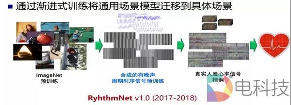 具体而言,其提出的是一个名为RhythmNet的端到端的可训练心率评估器,利用AI和光电容积脉搏波描记法来应对头部运动和光线变化方面的挑战。整个过程分为三部分:在ImageNet上预训练,然后将数据馈送到深度神经网络里面,最后对真实人脸心率信号精调。