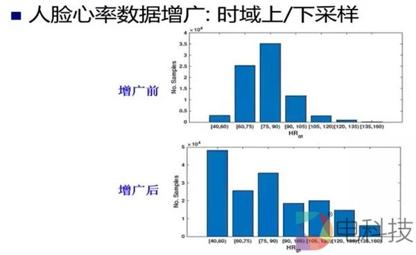 山世光采用的方法是对人脸心率数据增广,即在时域中进行上、下采样,这样训练集里面的心率的数据范围就会更加的广泛,且能获得相对更均匀的心率数据。