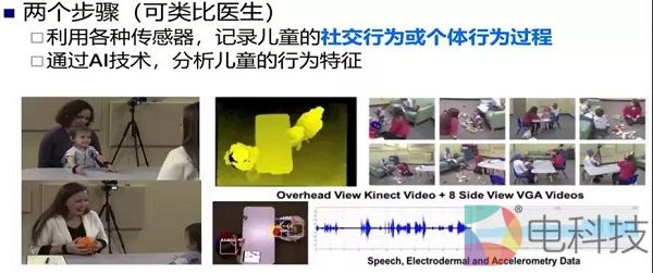 AI在自闭症儿童早期诊断上,整个过程大致有两个步骤:首先是利用各种传感器,记录社交行为或个体行为过程;然后通过AI技术分析儿童的行为特征。