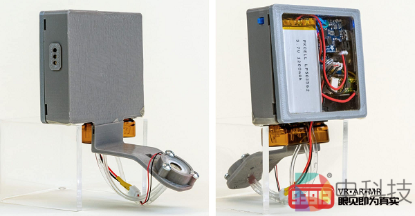 该设备由芝加哥大学的Jas Brooks、Steven Nagels和Pedro Lopes共同研发,其搭载的“热量显示器”是一款小型设备,可将其固定在VR头显的正面,并通过喷雾剂装置在体验者鼻子正下方散发气味,这些气味刺激了体验者鼻子的三叉神经,其微量的无味成分能够使体验者感觉到冷热温度的变化。