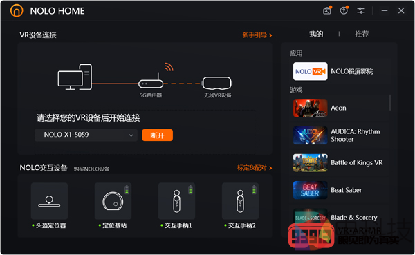 通过NOLO VR的这套空间定位技术,不仅能提供头、手6DoF的房间级定位追踪和交互,轻松追踪空间内人物的自由移动,搭配自研的串流软件NOLO HOME,经过简单操作,还实现NOLO X1与PC之间的无线数据传输,畅玩「节奏光剑(Beat Saber)」、「半衰期:爱莉克斯(Half-Life:Alyx)」等千余款SteamVR游戏大作,彻底摆脱线缆束缚,放开手脚随意活动。