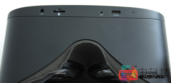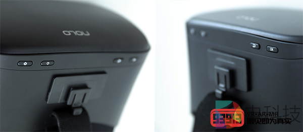 NOLO X1的机身上部包括Home键、开/关机按键、返回键以及确认键;机身下部分别是3.5mm标准耳机接口、Micro SD卡槽和Type-C接口;音量键被设计在机身右侧靠上的位置。面罩部分,NOLO X1采用了厚实的海绵织物材质,尽管鼻梁处开口设计较大,但较宽的面罩翼展设计使其更加贴合面部,实际体验中漏光现象并不明显,并且支持佩戴眼镜体验,无需手动调节。