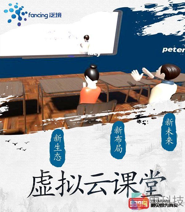 “虚拟云课堂”是一款应用于VR、PC、移动等终端的多人线上教学平台,可实现语音同步、交互动作与内容同步等,泛境提供的沉浸式教学方式一方面可解决线上教学问题,另一方面通过可视化与新形式大大提高师生上课的兴趣。