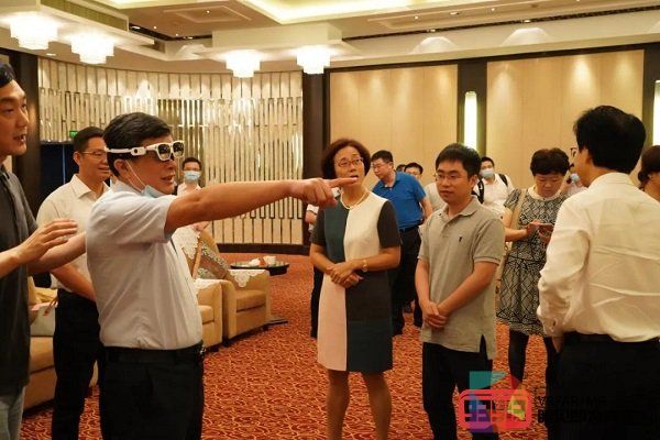 图:孙立为江西副省长吴忠琼介绍影创MR眼镜JIMO