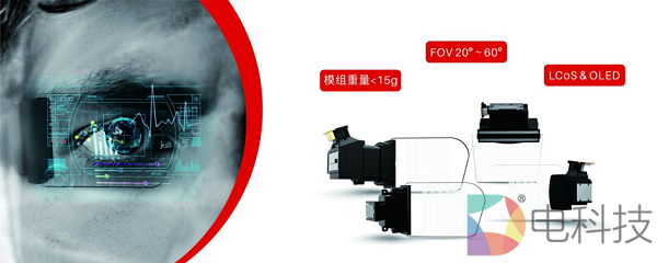 珑璟光电阵列波导3D光路模拟图(左)珑璟光电阵列波导产品图(右)