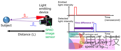 佳能公司开发的这款SPAD传感器具有高达100皮秒的时间分辨率,能够以超高精度确定光子到达像素的精确时间。利用该SPAD图像传感器进行ToF测量时,可以通过光源发射脉冲光照射到物体并返回到传感器的时间确定传感器和物体之间的物理距离。其高达100皮秒的时间分辨率,使该传感器能够精确的进行飞行时间距离测量。这款SPAD图像传感器可以很容易地集成进入各种设备,即使在完全黑暗环境中也可以非常精确地测量深度信息。这种特性使其在自动驾驶汽车和xR等类似设备的3D环境感知应用中极具前景。