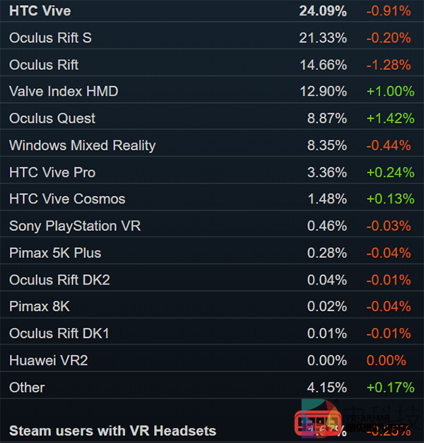 6月Steam硬件和软件调查报告显示,在增长1%之后,Valve Index的份额达到历史新高的12.90%,位居HTC Vive、Rift S和Rift之后,超越身前的Rift显然只是时间问题。