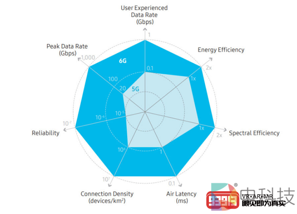 三星还表示,当5G网络迭代6G网络后,网络的速度、延迟及可靠性都将得到进一步的改善。虽然目前5G网络旨在达到20Gbps的峰值数据速率,但三星的目标是提供1000Gbps/s的峰值数据速率和1Gbps/s的用户体验数据速率。