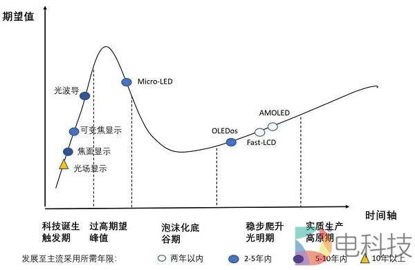 显示屏是 VR 成像的核心部件,显示屏的分辨率、功耗和尺寸都将影响VR设备的用户体验。目前VR显示屏的性价比成为竞争焦点,主流技术包括LCD和AMOLED,现已相对成熟,并在近两年被主流采用。在AR领域,新兴的Micro LED技术能弥补光波导的缺憾,但现正处于导入期初期,未能实现量产。