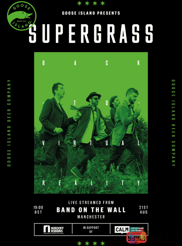 据nme.com报道,英国Supergrass乐队与美国鹅岛啤酒公司达成合作,将于8月21日在曼彻斯特举办一场VR演唱会。