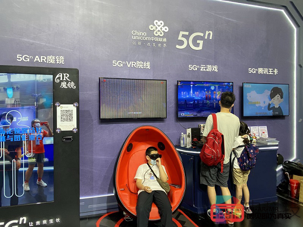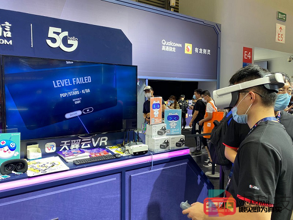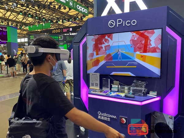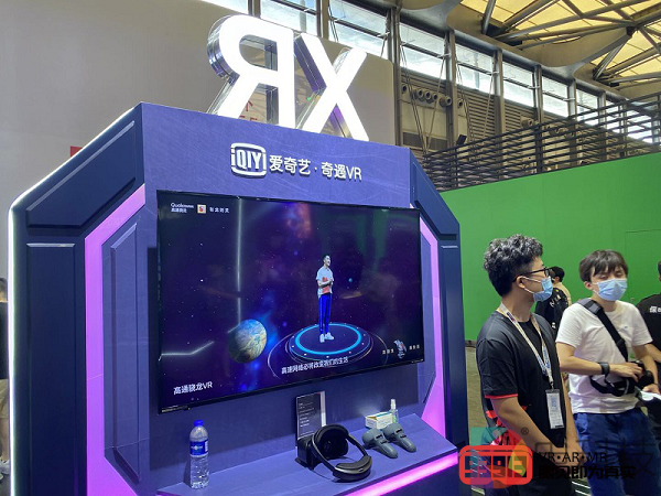 除了散落在各家展区的几颗“明珠”,本届CJ上XR设备最集中的地方就是高通展区了。今年高通把整个E4(也就是eSmart)馆给包了,E4馆也因此被称为“高通骁龙主题馆”,在其XR主题展区,我们看到了一个又一个熟悉的身影:3Glasses、GOOVIS、Pico、大朋、爱奇艺VR、HTC等厂商的产品位列其中,而与其相伴的则是国内各家运营商提供的XR相关服务。这些对于我们而言再熟悉不过的设备在大众消费者眼中却都是新鲜事物,由此自然得到了现场观众的踊跃体验。