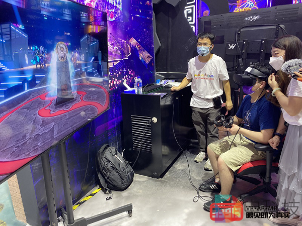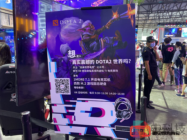 说到大家最关心的XR,我要说的是,本届CJ与XR关系不大。一方面,所有的XR硬件厂商基本没开设独立的展区,另一方面,只有少数几家游戏厂商的区域里提供了VR/AR体验区,这里要点名表扬完美世界,他们在展区里提供了用VR体验DOTA2电竞赛场的项目,这种将传统热门游戏与VR相结合的方式,自然吸引了不少现场观众积极参与。