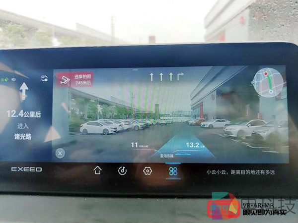 据悉,星途VX将配备AR实景导航功能——通过高清摄像头和GPS定位实现联动。从曝光出来的实拍图可以清晰地看出,通过AR技术,导航地图和现实场景相互融合,并将行驶路线展现得更加清晰直观。