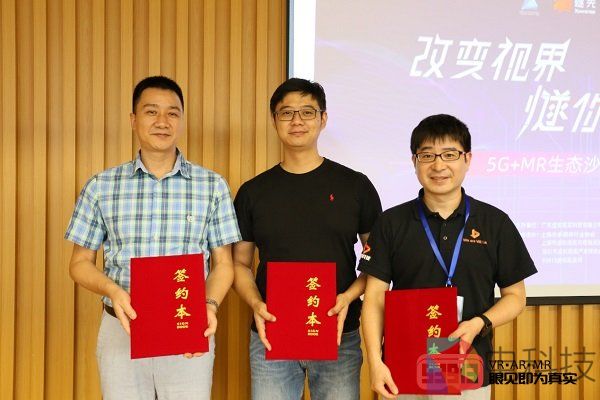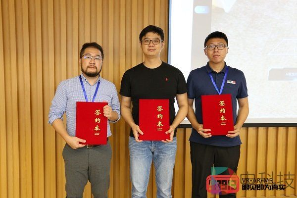 MR的发展离不开同行的支持和帮助,在短短几个月时间里燧光落地了一系列的项目,认识了一批志同道合的合作伙伴。为了促进MR产业的可持续健康发展,广东虚拟现实科技有限公司与战略合作伙伴进行了签约仪式。包括北京润尼尔网络科技有限公司、上海矩道网络科技有限公司、上海时未科技有限公司、广州集趣信息科技有限公司、河南创景科技有限公司董事长、厦门恒远智能科技有限公司。