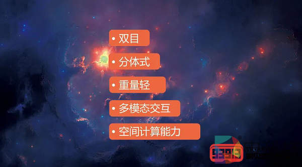 重量轻:重量越轻我们就能戴的越久,戴的越舒适。采用分体式设计也有重量的考量, 因为能够把一些电池、运算放在外面,这样眼镜就能够更轻量化。