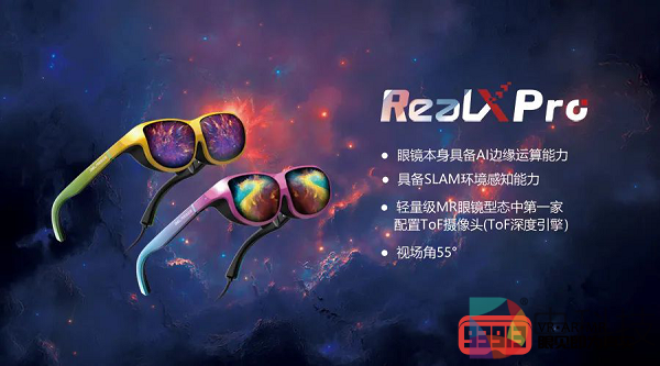 所以当我们看现在的市场,我们认为5G时代XR行业的一个发展机遇,就是我们提到的轻量化混合现实眼镜。0glasses在今年5月推出的我们第四代的MR眼镜RealX Pro就是为了掌握这波机会。RealX Pro本身具备有SLAM空间感知能力,同时它也是全球第一款在轻量级混合现实眼镜里加上了ToF深度摄像头的产品。iPad是今年第一季度加上了ToF, iPhone今年第四季度的新款也会配有ToF,可预见未来配有ToF的MR眼镜会越来越多。此外,RealX Pro视场角可以达到55度,也是同类产品里最大的,能提供更好的虚实融合沉浸感。