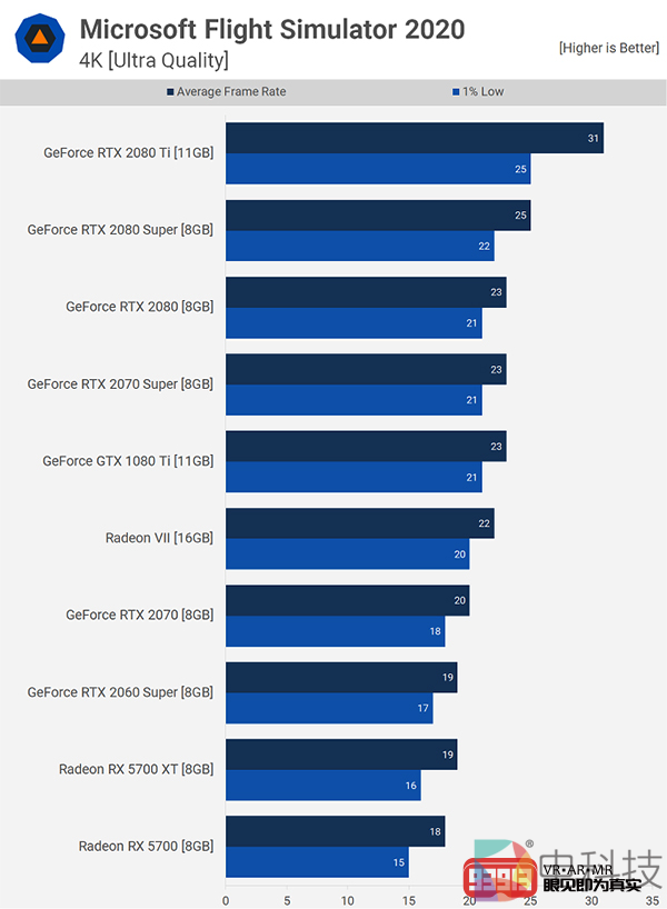 作为今年最受期待的大作之一,「微软模拟飞行」不仅视觉效果上令人叹为观止,技术层面也相当领先 ,但同时也对PC 硬件提出了相当高的要求。根据TechSpot分享的基准测试数据,在4K分辨率、极致画质(Ultra Quality)下,即便“卡皇”RTX 2080Ti的平均帧数也不过是可怜的31FPS……庆幸的是,1080P分辨率、中等画质(Medium Quality)下,GTX 1660 Super或者RX Vega 56等主流显卡基本都能勉强达到平均60FPS的“及格线”。
