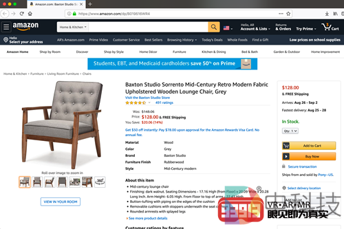 而Room Decorator的体验显然更进一步,用户不仅可以一次性可视化多款商品,还可以在外出时事先拍摄好房间的AR快照,之后就能随时随地使用该功能尝试各种家居搭配。目前这一功能支持亚马逊平台的数千款家具商品,当用户看中一件商品并单击“View in Your Room”按钮后,即可直接可视化该件商品。
