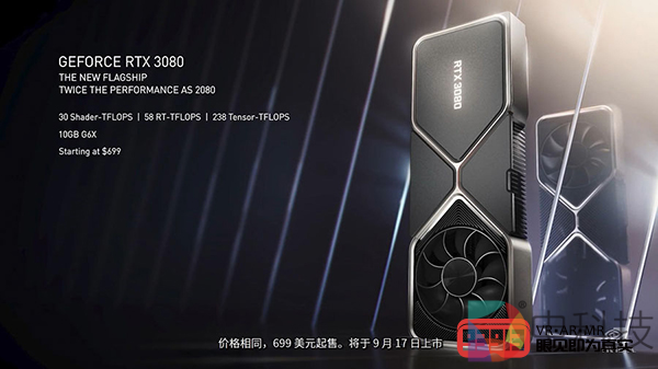 售价和发售日期方面,RTX 3080将在9月17日正式开卖,售价699美元/5499元人民币;RTX 3090将在9月24日发售,售价1499美元/11999元人民币;想买RTX 3070的用户需要等到10月,售价为499美元/3899元人民币,具体发售日期待定。