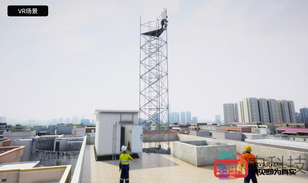 另一方面,VR培训系统的优势还体现在安全性、灵活性、便捷性等方面——VR培训系统模拟了不同的场景环境(如塔楼),极大地降低了户外实训安全风险;具备拓展功能的“工具箱”与“菜单栏”大大减少了传统实训在物理设备和培训讲师上的重复需求;同时规避了户外气候变化等不可控因素,操作培训可全天候开展。