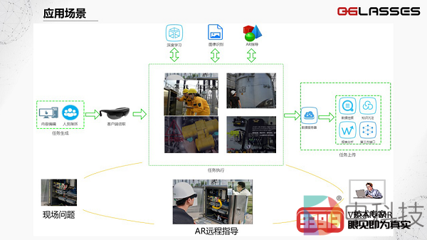 PSS全终端工作辅助系统是一款面向汽车、电力、航空航天、石油化工、机械制造等行业的通用工业系统,使用智能眼镜外加增强现实技术,以图文声像及模型动画三维叠加的方式,实时指导巡检流程的进行,可根据当前设备呈现出相应的3D信息,达到增强现实的即视感,在功能上能完全覆盖使用手持设备巡检的功能。同时一线工作人员如果遇到无法解决的问题,可远程呼叫技术专家进行音视频远程指导,通过AR可视化技术,让技术专家手把手指导工作,实现解放双手,提升效率与质量。