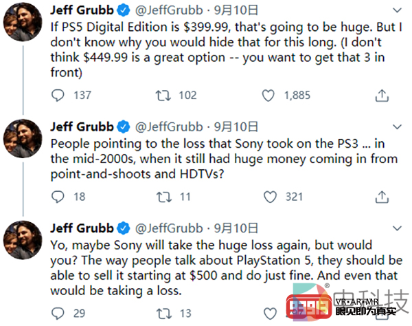@JeffGrubb还在Twitter上表示,为了赢得市场,在主机硬件上,微软和索尼都舍得在初期亏本销售。