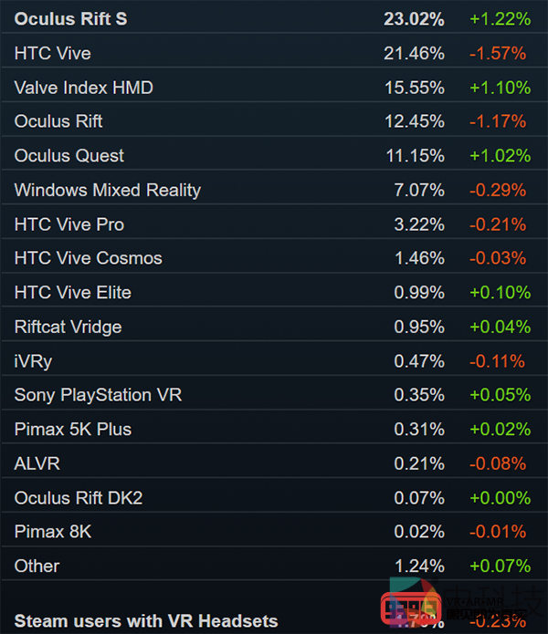 ▲Valve Index稳居TOP3