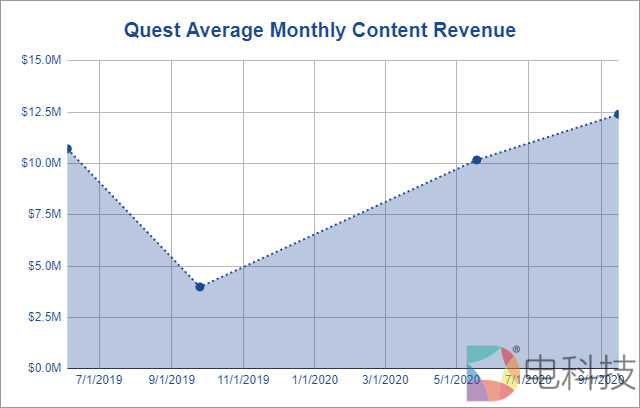 通过Quest平台每月平均内容收入图表,我们还可以大致了解Quest应用的销售增长趋势。