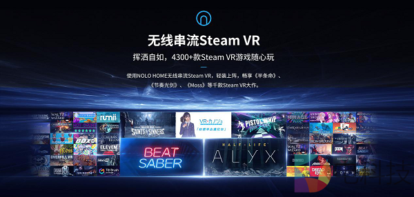 除此之外,NOLOM HOME还支持NOLO CV1 PRO定位交互手柄+智能手机+VR眼镜盒子串流PC畅玩「节奏光剑」、「半衰期:爱莉克斯」等4300+款VR大作,此产品形态仅需千元,是目前全球范围内成本最低的玩Steam VR的方式,也是云VR最青睐的组合方式。