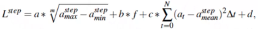 其中,a, b, c和d是超参数,根据实际应用进行训练。f表示行走步频,表示加速度计读数极差的m次开方,表示加速度计读数的方差。