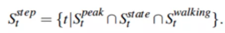 最后,当上述状态均取得1时,认为当前时刻为检测到一步,计算公式如下: