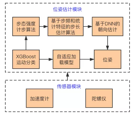所提出的方法主要包括基于步态强度的计步算法,基于步频和统计特征的步长估计算法,基于深度模型的朝向回归算法和基于机器学习的运动分类算法。下面介绍一下相关算法。