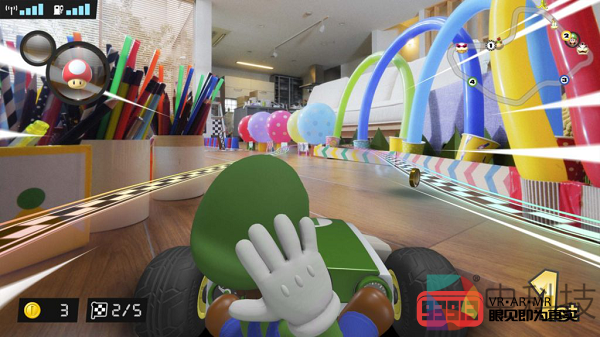 据外媒VRFocus报道,近日,任天堂公开了旗下AR赛车游戏《马里奥卡丁车:家庭巡回赛》的最新玩法。