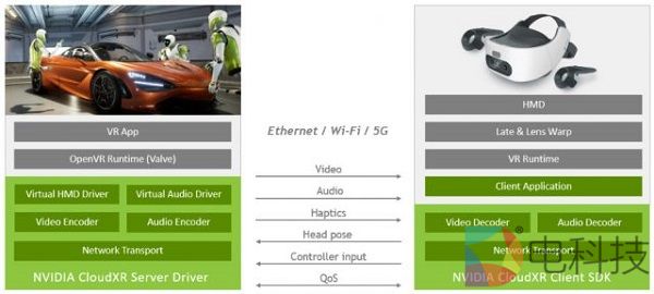NVIDIA表示,CloudXR系统可以将任何OpenVR/SteamVR内容传输到Windows或Android系统的终端用户,而无需对流媒体应用进行任何特殊的修改。