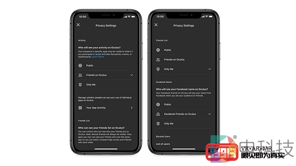 是否将Oculus平台的VR活动同步到Facebook个人资料或者时间线上也由用户自由选择。 用户可以随时在Oculus应用中或戴着VR头显时更改隐私设置。