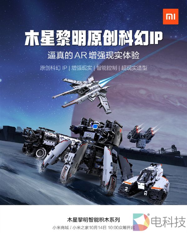 日前,小米商城放出新品众筹预告:「木星黎明智能积木系列」将于10月14日10点开启众筹。