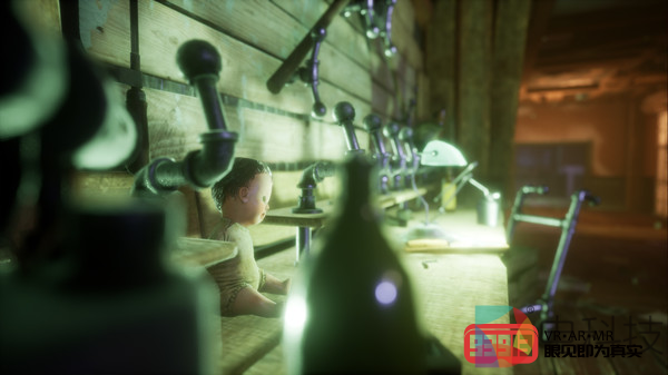 《A Wake Inn》玩法与另一款VR恐怖游戏《Last Labyrinth》类似,玩家只能坐在轮椅上通过手柄来移动并应对在探索酒店过程中出现的邪恶机械人偶,同时游戏还提供了一个可照亮黑暗环境的手电筒、一台可收听定制电台的收音机以及一个可放映收集到的电影胶片的电影放映室,显而易见这些道具都极大增强了这款游戏的交互性。