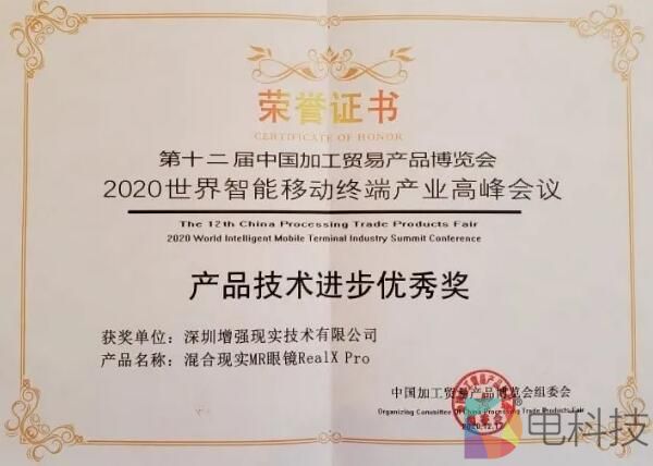 0glasses及产品RealX系列MR智能眼镜,在 “2020世界智能移动终端产业高峰会议”与OPPO、vivo、中兴、歌尔等一同荣获电子消费品行业突出贡献奖和产品技术进步奖。