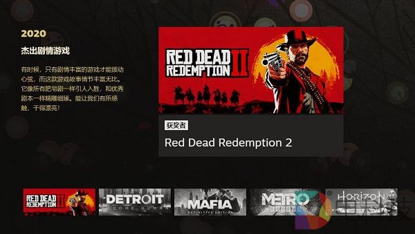 2020杰出剧情游戏:「荒野大镖客:救赎2」