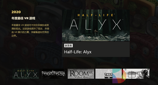 每年一度的「The Steam Awards」评选结果于今天正式揭晓。「The Steam Awards」各个奖项的入围游戏来自Steam平台,最终得主均由玩家票选产生,代表了玩家对于各类型游戏的喜好。其中,2020年度最佳VR游戏奖项由V社自研的「半衰期:爱莉克斯」摘得,也代表了Steam平台VR玩家群体对于游戏的认可,入围该奖项评选的VR游戏还包括:「恐鬼症」、「The Room VR:A Dark Matter」、「Thief Simulator VR」以及「星球大战:战机中队」。