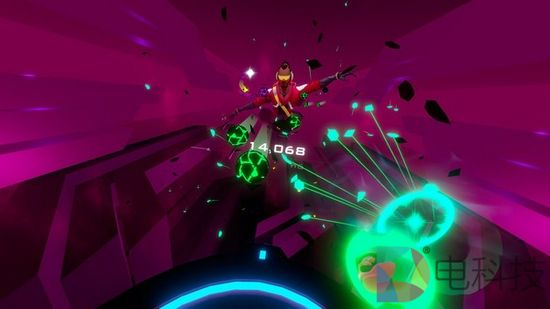 节奏试炼开始,玩家举起头手6DOF手柄的同时,《舞力对决》里对应的角色也会立刻举起红、绿颜色的两个接收器。紧接着,激动人心的时刻就要来了:伴随动人的旋律,无数红、绿色的音符球会像玩家飞来,玩家需要用手中接收器捕捉对应颜色的音符球,二者接触的瞬间便会制造悦耳的声效,也代表有效得分。假如玩家丢失掉音符或者用接收器接收了不同颜色的音符,能够明显感受到来自手柄传递出的震动反馈,即提醒失分。假如玩家能够连续命中意味着得分加倍,而且整个游戏过程会非常顺畅且相当有成就感。