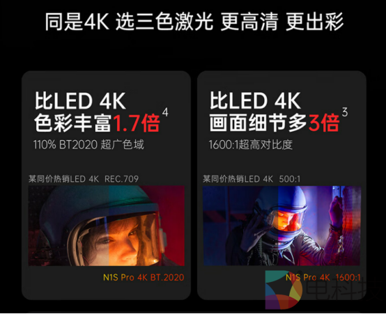 值得一提的是,售价仅6499元的N1S Pro 4K也是国内唯一能在最低价位中做到三色激光+4K的投影仪。