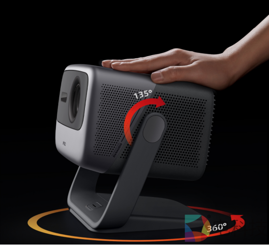 如果说三色激光赋予了N1S Pro 4K生命,那么一体式云台设计就给了坚果N1S Pro 4K自由。用过投影仪的用户想必都知道,投影仪存在独立使用困难的痛点,通常只能通过吊装、壁挂、或者垫纸箱、书籍才能找到完美的投影角度。N1S Pro 4K采用了创新的一体式云台化设计,将数码产品配件中的云台与投影仪完美地组合在一起,做到了360°水平调节和135°无级悬停,指哪打哪,让投影可以轻松找到完美的角度;再加上云台式画面实时校正,无论是将画面投在墙面上或是投在天花板上,都可以使画面保持方正、完整,让用户做到了真正的观影自由、躺平自由和摆放自由。