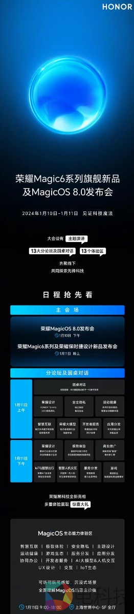 大会次日,荣耀旗舰新品Magic6系列将正式发布。根据官方披露信息,荣耀Magic6系列将搭载第三代骁龙8移动平台,支持70亿参数端侧AI大模型。另外,荣耀还在当天组织了包括荣耀大模型、智慧互联、智慧人机交互、安全隐私、loT与智慧出行、运动健康等13个分论坛及圆桌对话,就开发者关注的问题进行深度探讨。