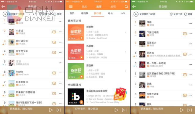在虾米音乐平台,热歌榜、原创版、新歌榜,赵雷都同样名列第一,这说明虾米音乐给赵雷带来的流量依然不俗。在百度音乐榜单中,赵雷的《成都》也进入到热门榜排行第一的位置。