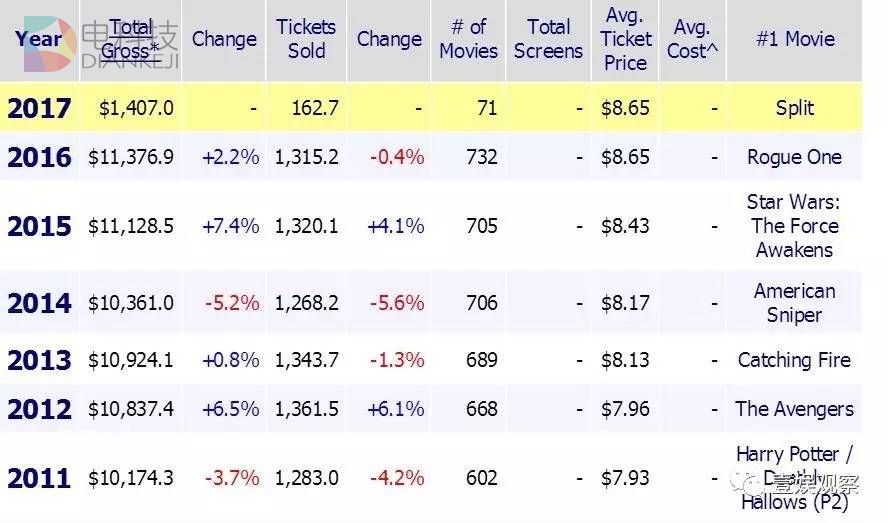 北美市场历年票房数据(来源:box office mojo)