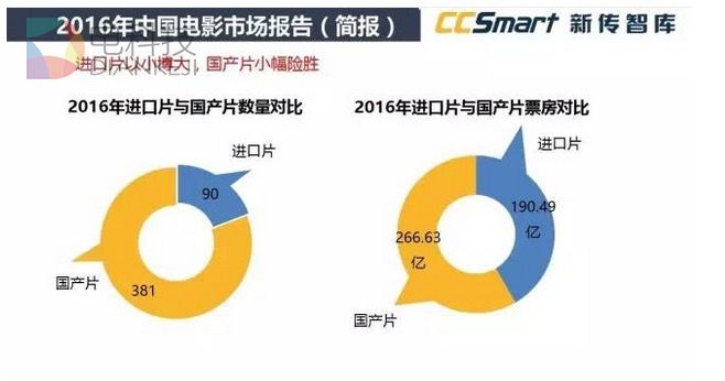 2016 年,国产电影虽然在数量上以 381 部力压只有 90 部的进口电影,但在票房收入上,却仅领先进口电影 76.14 亿元。