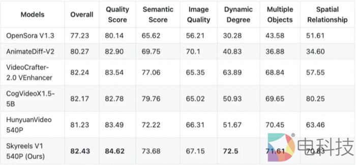 图1丨SkyReels-V1文生视频指标对比(来源:昆仑万维SkyReels)