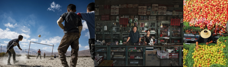 银奖作品则呈现出更广阔的地理与文化视角。《帕尔米高原的足球少年》捕捉高原上少年驰骋的动感瞬间,展现坚韧生命力;《乡村供销社》以纪实质感还原乡村生活场景,传递时代变迁中的人情温度;《丰收的苹果摊》则以饱满色彩与构图,渲染出农产品丰收的喜悦氛围。三者共同构建起从高原到村落、从个体到群体的影像叙事谱系。